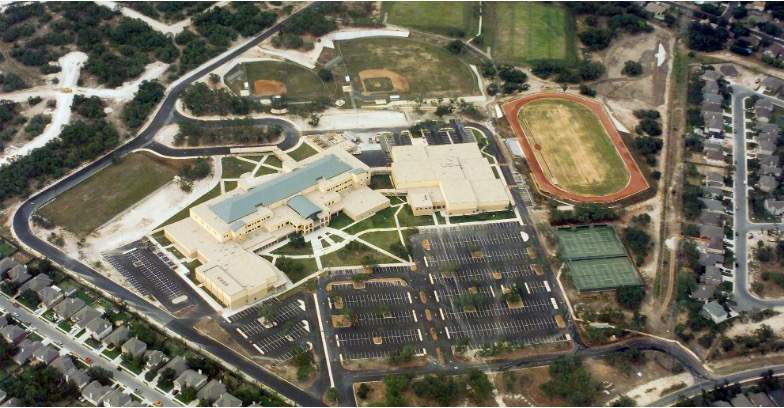 Jesse Garza led the design of Earl Warren High School, a 342,000-square-foot campus for Northside ISD serving 2,400 students on a heavily wooded 77-acre site. Thoughtfully planned to integrate academic buildings with athletics fields, parking, and outdoor facilities, the school includes general education classrooms, fine arts, science, CTE, a library, auditorium, and comprehensive athletic spaces. The three-story main building establishes a strong sense of arrival through an expressed structural entry and a prominent library/media center above, emphasizing stability, technological advancement, and the district’s commitment to learning. Inside, the building is organized around a central commons and mall corridor, linking dining, fine arts, athletics, and support functions on the first level, with academic spaces on the upper floors. Exterior materials—including fractured-face masonry and refined plaster—create a sense of permanence and maintain human scale across this large, modern high school campus.