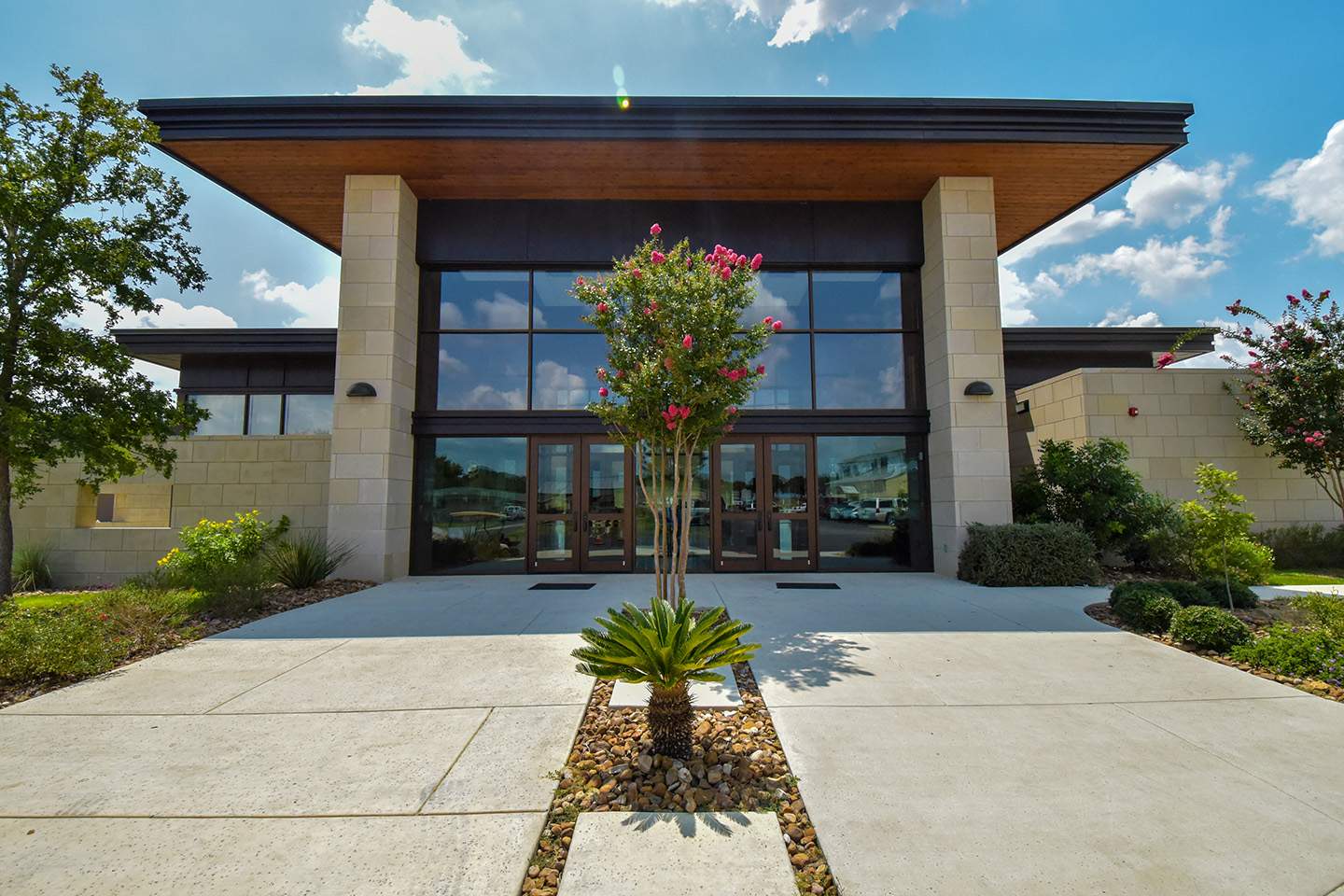 Jesse Garza designed the Lyceum Building as the second major component of the Geneva School of Boerne’s 30-acre master plan, creating a flexible, multi-purpose venue at the symbolic heart of campus. Serving as the setting for student theses, recitals, dances, and community events, the building reinforces the school’s classical education focus on public speaking and presentation. A rectangular plan and expansive glass walls connect the interior to the surrounding campus, while flanking limestone walls provide privacy and evoke the refined Texas Hill Country vernacular. In the evenings, the glass façade creates a dramatic, lantern-like presence that highlights the building’s importance. Durable materials including limestone, concrete, steel, and locally sourced stone were selected using sustainability best practices, ensuring a sense of permanence, dignity, and long-term performance.